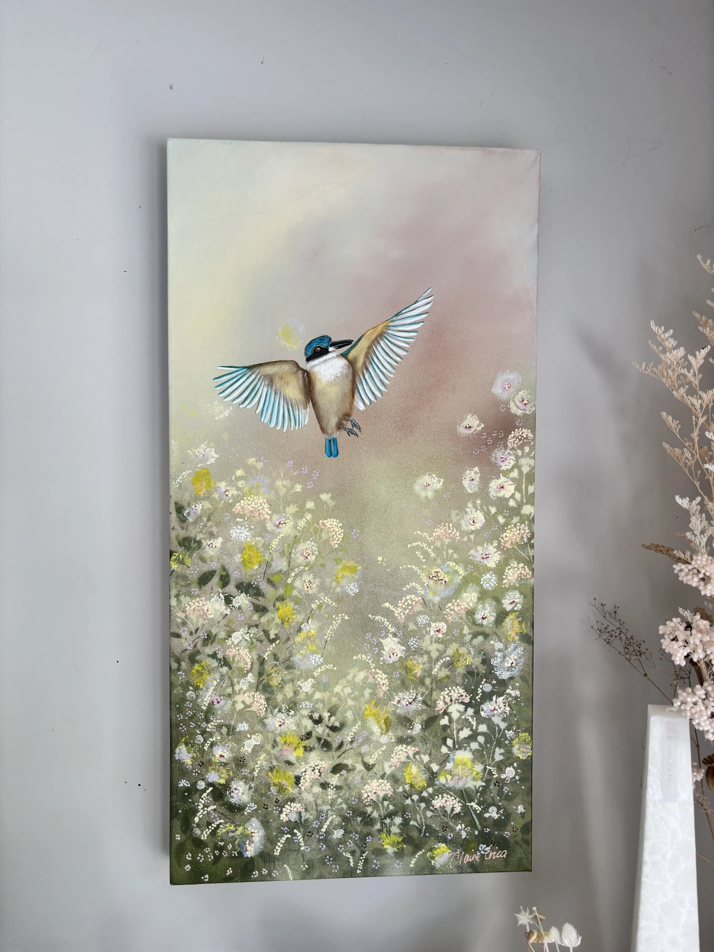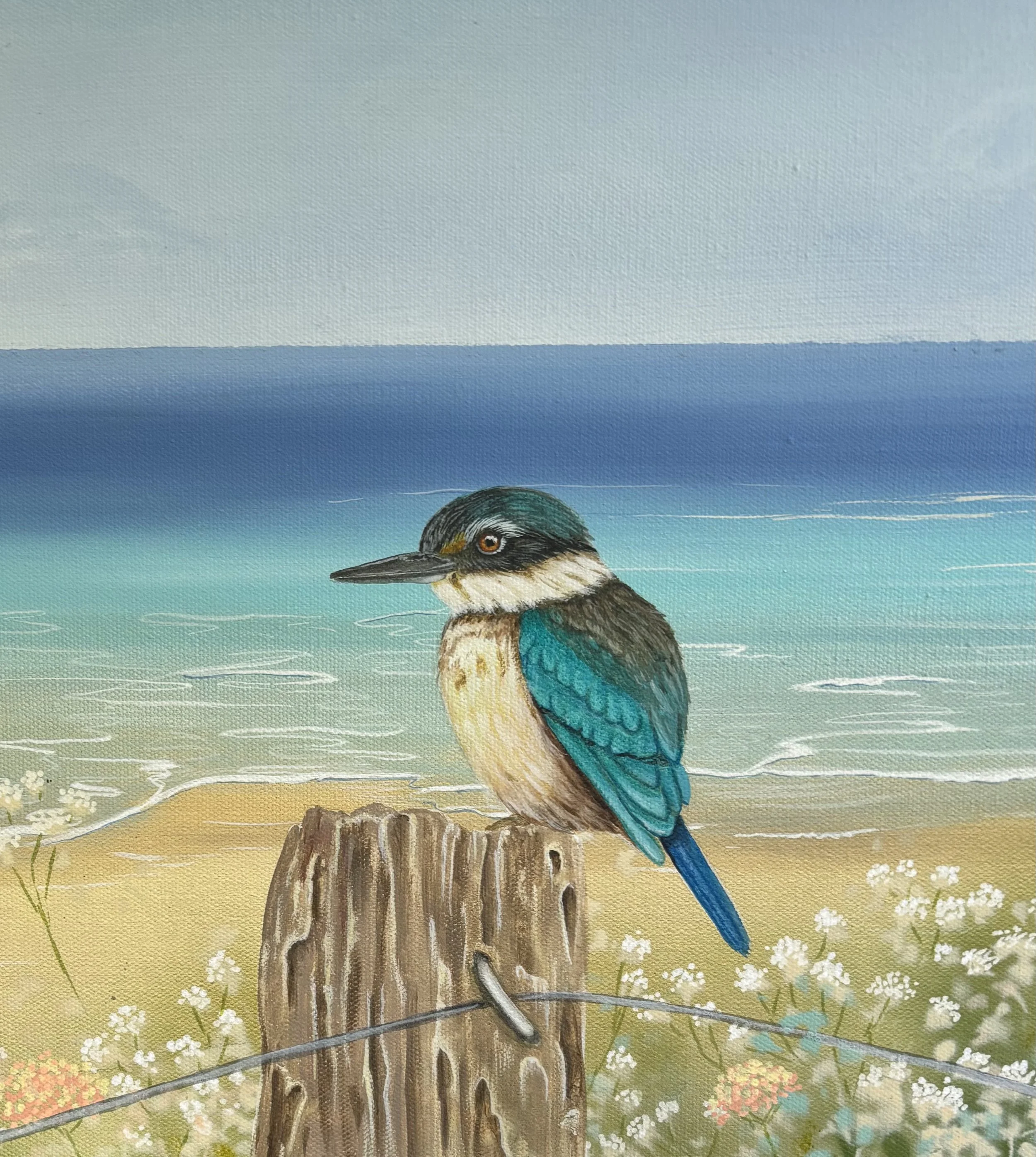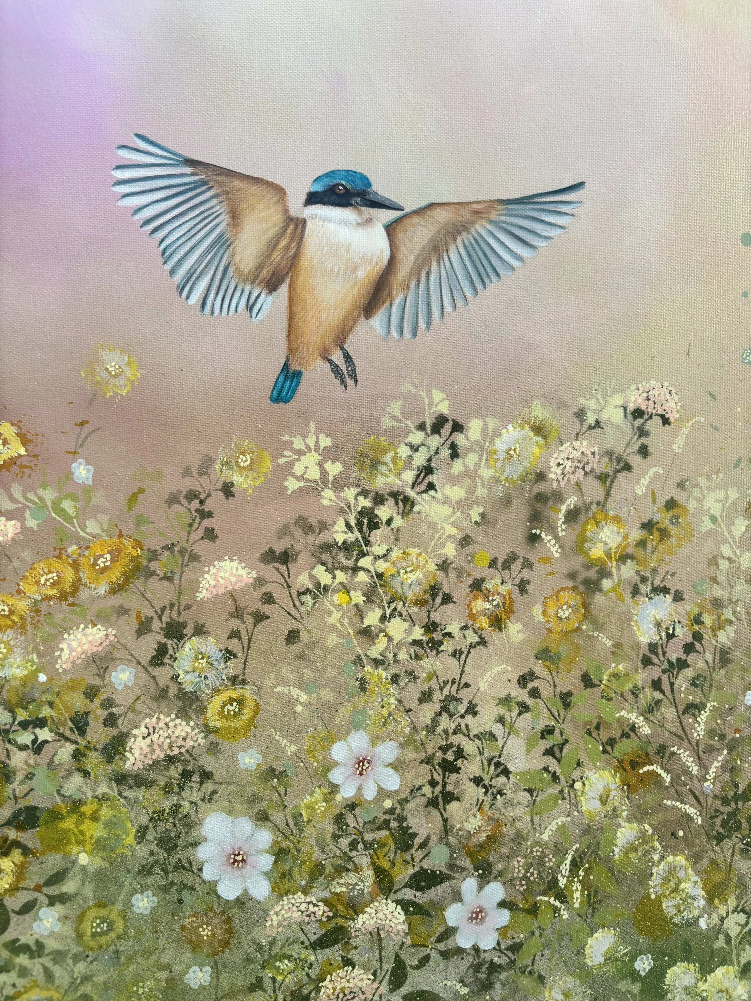 Many layers of transparent colour and interference pigment are applied to achieve the play of light on her work. The seemingly effortlessness of Claires artistry holds a lifetime of dedication, frustration and determination, without which such excellence would not be possible. The fresh colour, vibrancy and innovative quality of her work testifies to her continuing process and natural ability.