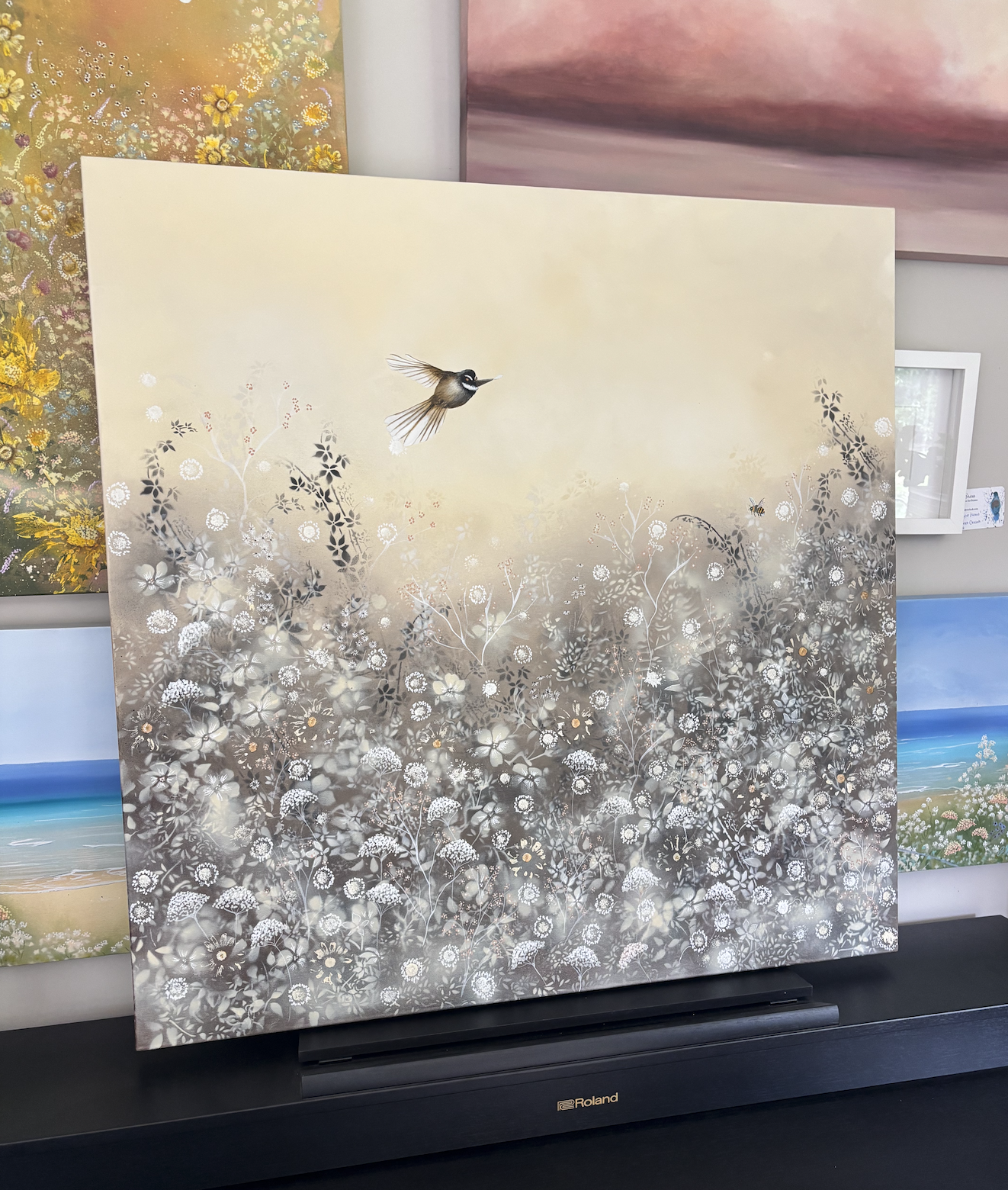 The Pencil and Paint Series showcases works that blend the subtle precision of graphite with the richness of paint. By combining these mediums, the subjects are rendered with striking clarity and depth, allowing them to stand out boldly. Traditionally reserved for paper, graphite here is elevated through the use of modern archival materials, enabling Claire to push creative boundaries. The result is a collection of distinctive and compelling pieces that reflect her signature attention to detail and artistic sensibility—capturing the intricate beauty of each subject, as she is so well known for.